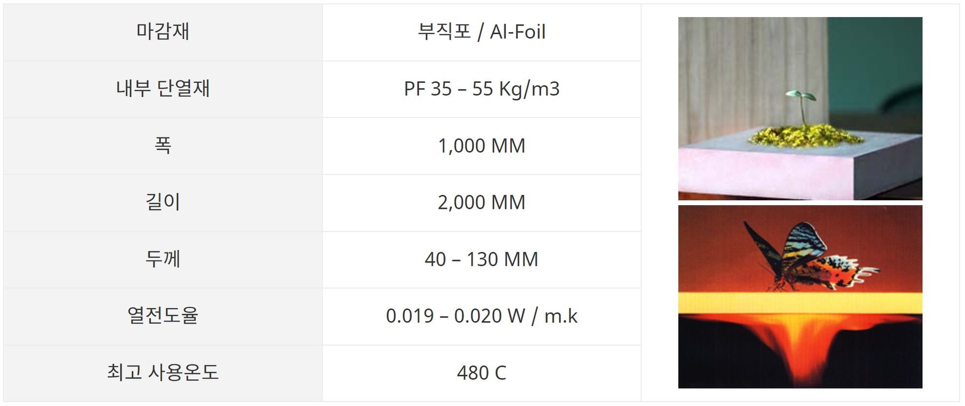 |탁월한 단열성, 불에 타지 않는 준 불연 단열재