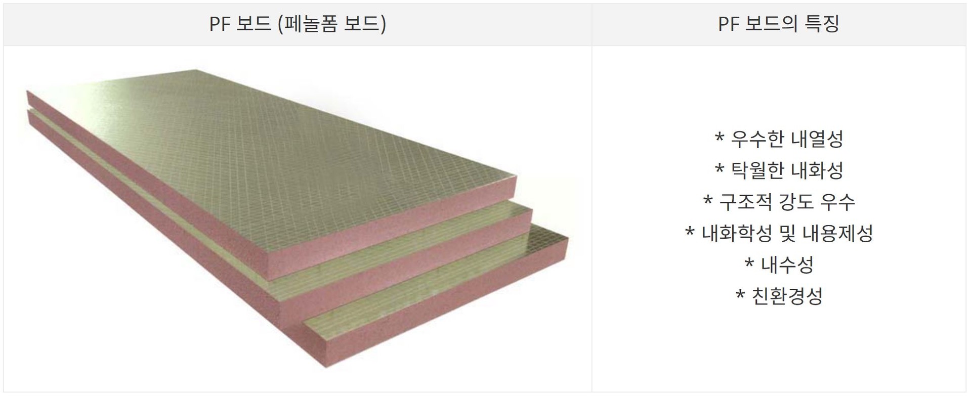 PF 보드 (페놀폼 보드) 물성